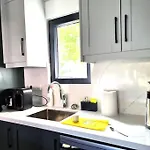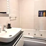 Inredningen inkluderar skrivbord samt plattskärms-TV med satellitkanaler. I badrummet finns även en badtunna och en separat toalett. Det finns också torktumlare, badlakan och handdukar.